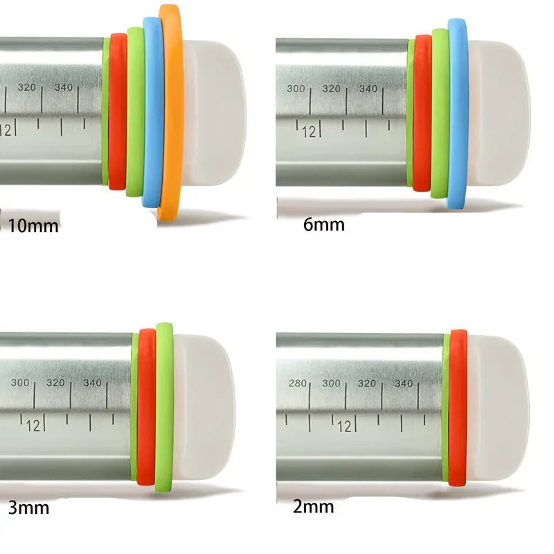 Edelstahl Nudelholz mit verstellbaren Ringen